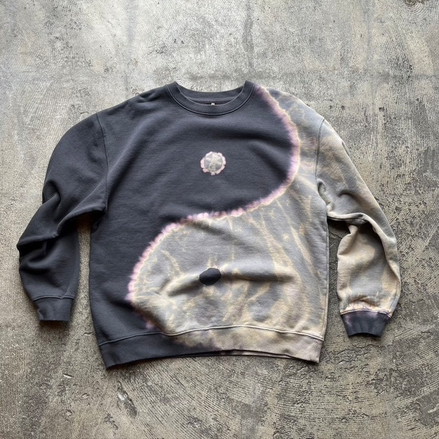 Yin Yang SWEAT 税込¥16500 (本体価格¥15000) 一点一点、染め師による手仕事の抜染が生み出す模様は月や波を思わせます。裏表両面に陰陽が流れるように広がり、全身を包み込む構図。偶然が重なり生まれた滲みと、大らかで力強い陰陽のコントラスト。 身体の流れが整うような心地よさ。 1点ずつ抜染による滲みは偶然に生まれるため、それぞれ表情が異なります。 SIZE : L 着丈: 62.5cm / 胸囲: 52cm / 肩幅: 56cm/ 袖丈: 54.5cm XL 着丈: 63.5cm / 胸囲: 56cm / 肩幅: 52cm/ 袖丈: 55.5cm COLOR : SUMI 素材 : 綿 100% 商品在庫について 表示されている在庫は店頭在庫と連動しております。お買い物カゴに入れて頂いた商品の在庫が切れている場合もございます。ご注文商品が売り切れの場合はできるだけ早めのご連絡を心掛けておりますが状況によりご連絡が遅れる場合もございますのでご理解お願い致します。 *商品を平置きして採寸しております。若干のズレは申し訳ございません。予め御了承ください。 *画面上の色はブラウザや設定により、実物とは異なる場合があります。ご了承の上ご注文下さい。 送料 : 本州、四国、九州一律880円 北海道、沖縄 990円