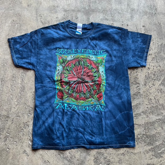 RAY TROLL OFFICIAL: SOCKEYEDELIC TIE-DYE T-SHIRT 税込¥9350(本体価格¥8500) RAY TROLL : レイ・トロールは、1954年3月4日生まれのアラスカ州ケチカンを拠点に活動するアメリカ人アーティストです。 科学的に正確でユーモラスなアートワークからなる彼の作品ですが、その中でも最も有名なデザインは「Spawn Till You Die」で、映画「スーパーバッド」や俳優ダニエル・ラドクリフが着用するなど、様々なシーンで見かけます。 サーモンから海洋哺乳類、化石の記録でしか発見されていない生物まで、レイ・トロールが表現するあらゆる生物は、世界中の漁業、科学、環境活動のコミュニティで象徴的な存在となっています。 彼は海洋科学、古生物学、地質学、生態学、進化生物学などの幅広いフィールドワークからインスピレーションを得ています。 彼の絵画やミックスメディアのドローイングは、 マイアミ科学博物館、バーク自然史文化博物館、アラスカ航空、アンカレッジ博物館、アラスカ州立博物館、ケチカン博物館に収蔵されている。 彼の作品が施されたグッズは、米国の博物館で取り扱われております。 SIZE : L 着丈: 69.5cm / 胸囲: 52cm / 肩幅 : 50cm / 袖丈 : 17cm COLORTONEボディを使用しています。 インポート商品の為、若干の傷、汚れがある場合がございます。サイズも参考程度にお願い致します。モノによって多少違う場合がございます。タイダイ染めなので色移りがある場合がございます。ご了承下さい。 商品在庫について 表示されている在庫は店頭在庫と連動しております。お買い物カゴに入れて頂いた商品の在庫が切れている場合もございます。ご注文商品が売り切れの場合はなるだけ早めのご連絡を心掛けておりますが状況によりご連絡が遅れる場合もございますのでご理解お願い致します。 *商品を平置きして採寸しております。若干のズレは申し訳ございません。予め御了承ください。 *画面上の色はブラウザや設定により、実物とは異なる場合があります。ご了承の上ご注文下さい。 送料 : 本州、四国、九州一律880円 北海道、沖縄990円