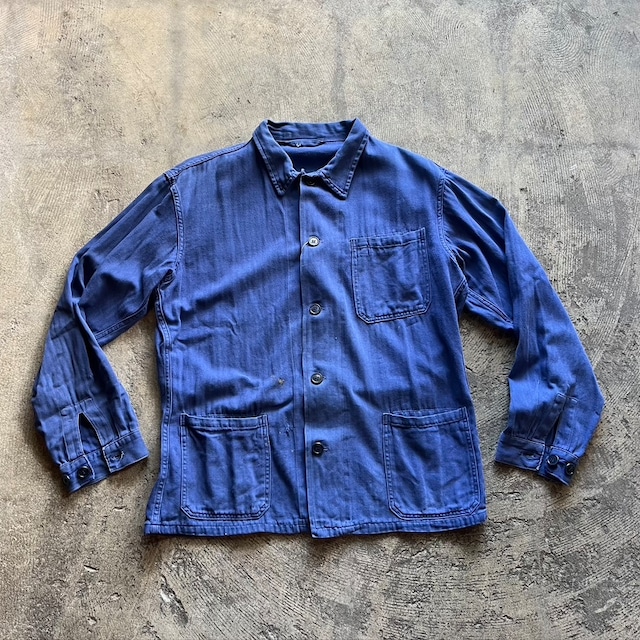 VINTAGE GERMAN BLUE CALL 税込¥13200(本体価格¥12000) SIZE : 着丈: 69.5cm / 胸囲: 57cm / 肩幅 : 50.5cm / 袖丈 : 58cm USED商品の為、傷、汚れ、破れがございます。ご了承下さい。 商品在庫について 表示されている在庫は店頭在庫と連動しております。お買い物カゴに入れて頂いた商品の在庫が切れている場合もございます。ご注文商品が売り切れの場合はなるだけ早めのご連絡を心掛けておりますが状況によりご連絡が遅れる場合もございますのでご理解お願い致します。 *商品を平置きして採寸しております。若干のズレは申し訳ございません。予め御了承ください。 *画面上の色はブラウザや設定により、実物とは異なる場合があります。ご了承の上ご注文下さい。 送料 : 本州、四国、九州一律880円 北海道、沖縄990円