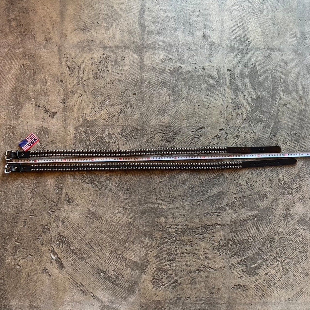 写真の最後の2枚は実寸がわかりやすい様にとW32、W34の比較になります。インポート商品の為、スタッズの並びが歪だったり多少の傷、汚れがある場合がございます。ご了承ください。
