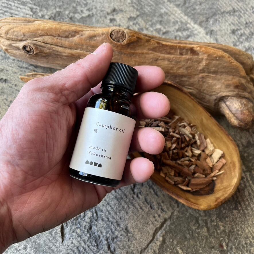「屋久島クスノキ」を山の滝の豊かな水で蒸留してつくられた、自然100%のエッセシャルオイル 力強い爽やかな香り。