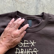 サンフランシスコにあるコミュニティーと創造性のプラットフォームです。単なるコーヒーショップではなく、ミュージシャンや詩人、アーティストなど、多様なカルチャーを持つ人々が集まります。そんなFARLEYSに別注したスウェット。表裏共にプリントを施し、両面お楽しみいただける仕様にしました。起毛のある裏側を表にしてご着用いただくことも可能です。
