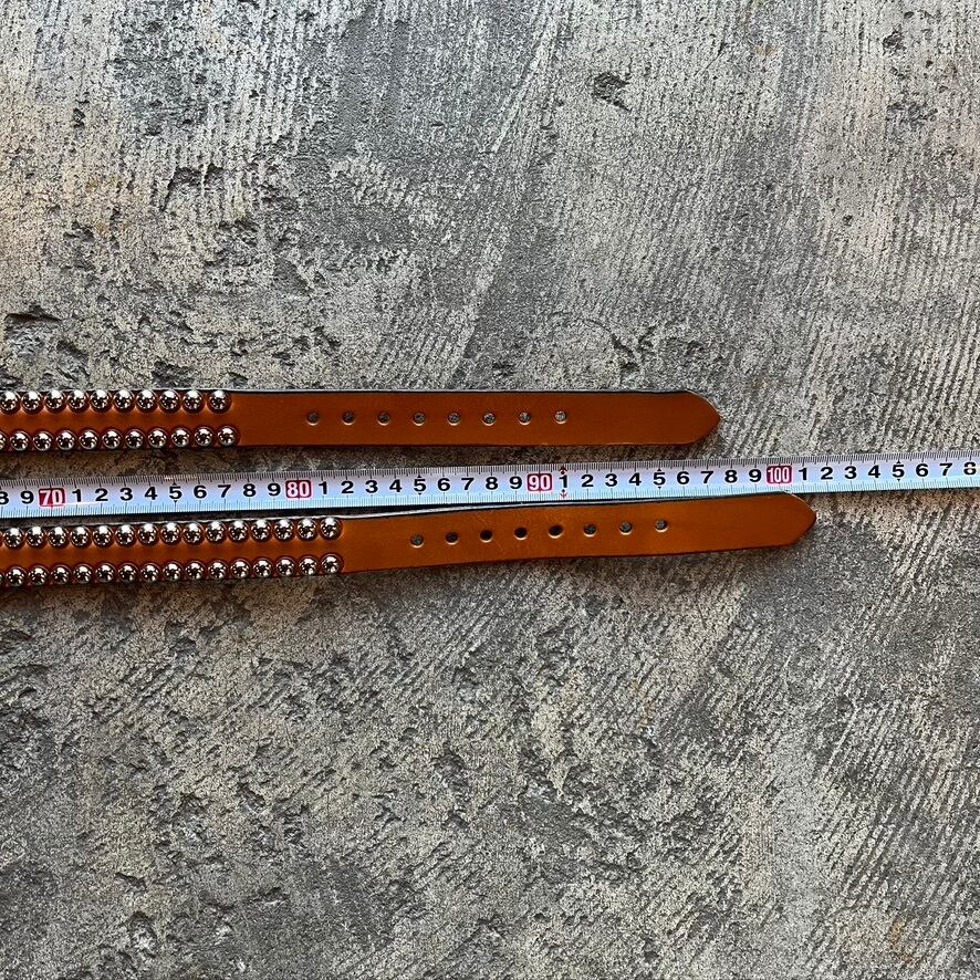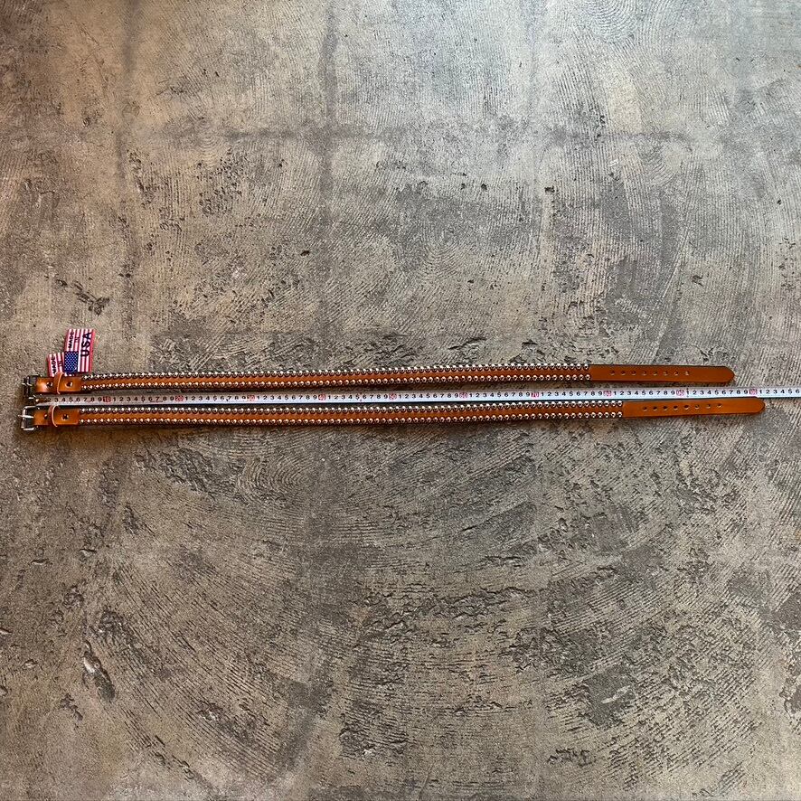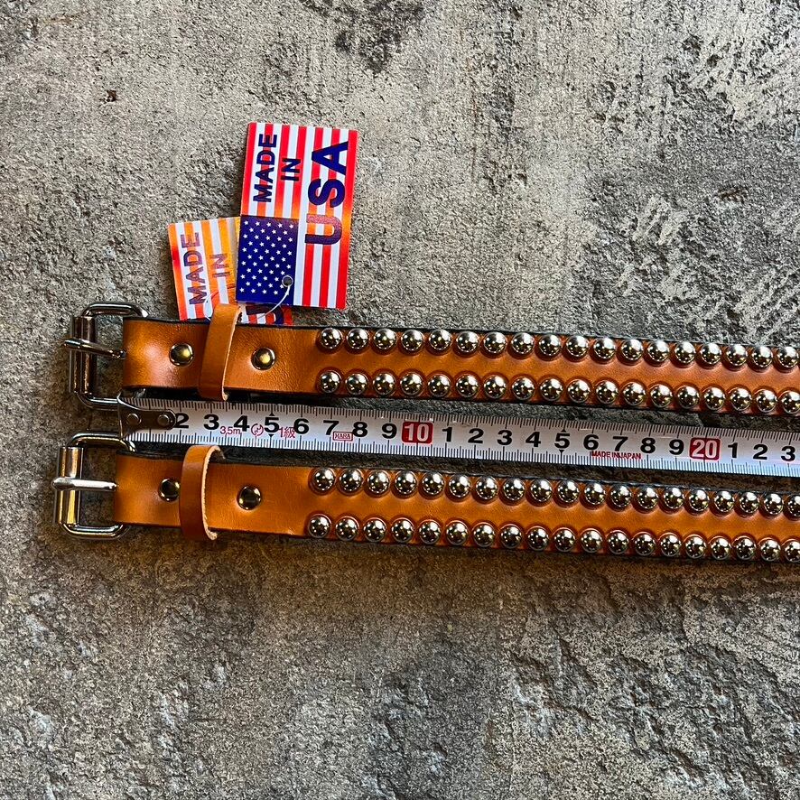 写真の最後の3枚は実寸がわかりやすい様にとW32、W34の比較になります。インポート商品の為、スタッズの並びが歪だったり多少の傷、汚れがある場合がございます。ご了承ください。