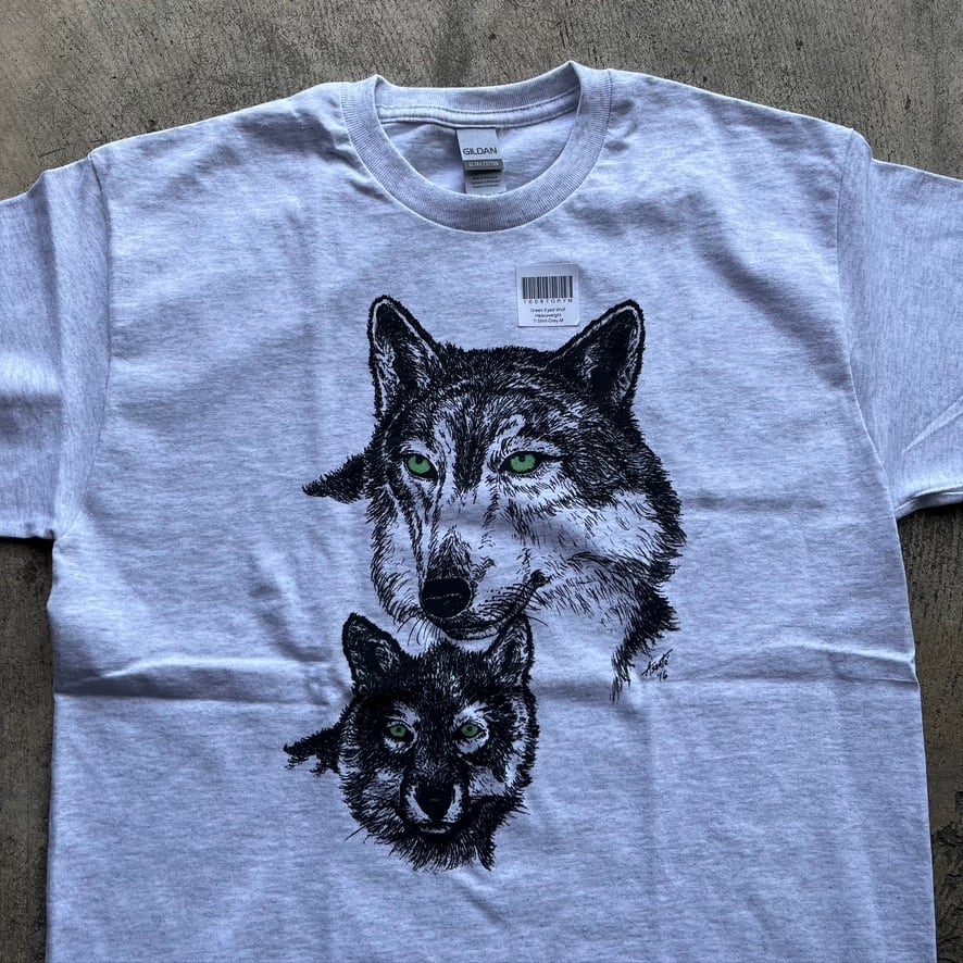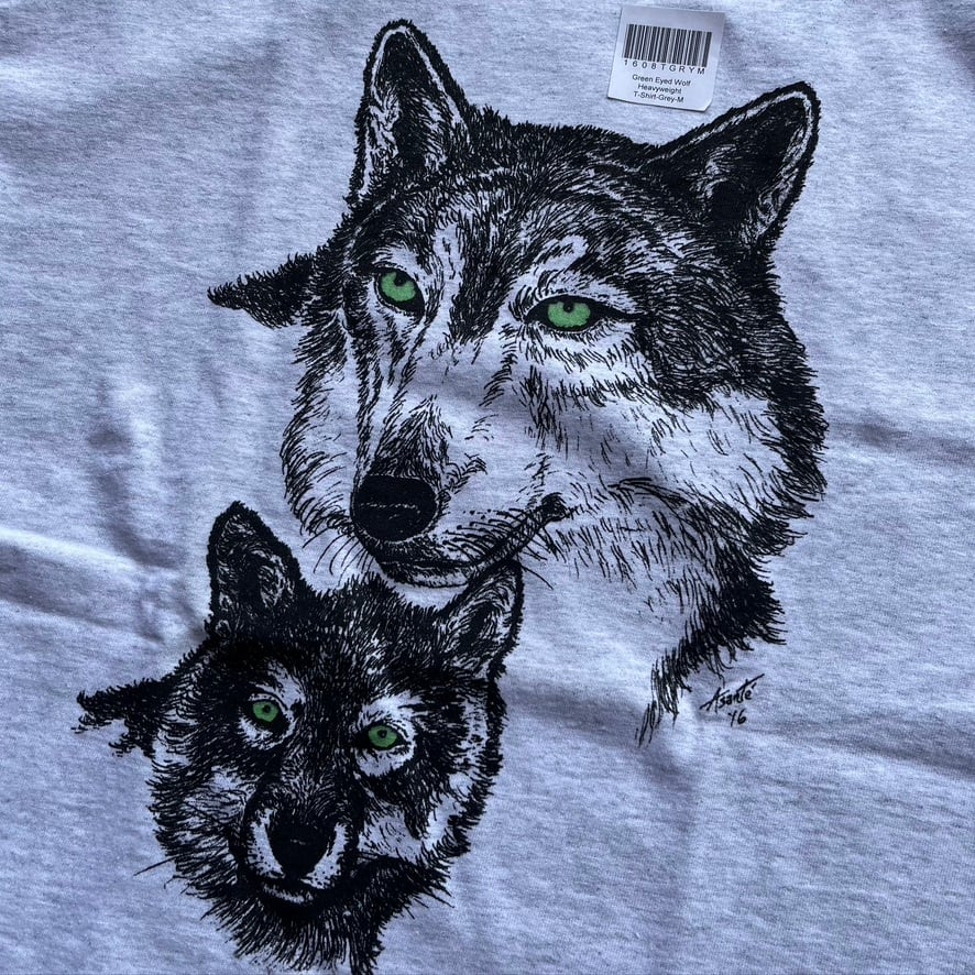 Jim Morris Environmental & WildLife T-Shirt Co : GREEN EYED WOLF HEAVYWEIGHT TEE