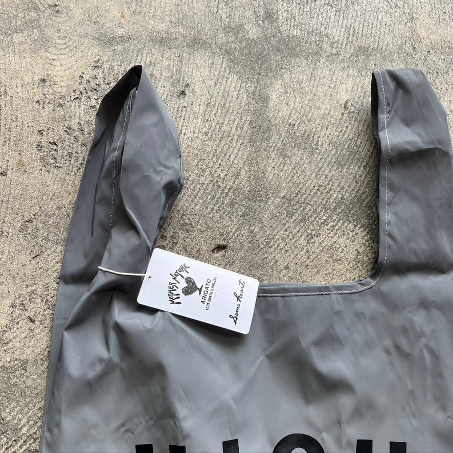 ワークウェアにつきものとしてはリフレクター素材が思い浮かびますが、そんなリフレクター素材で作られたエコバッグです。