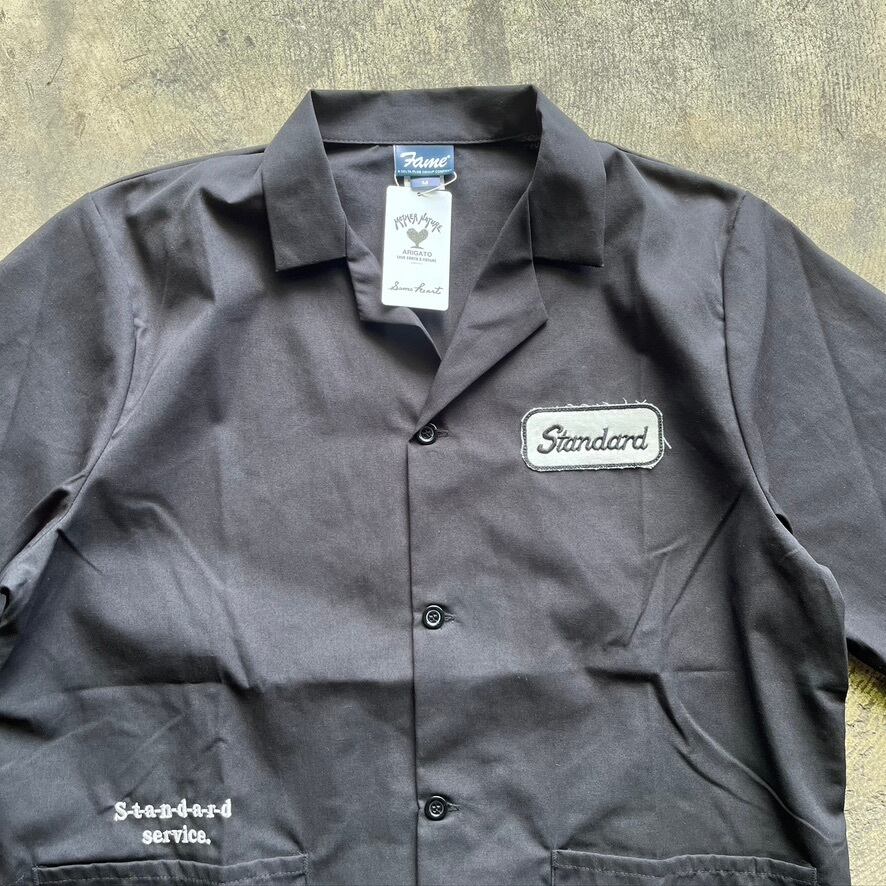 胸にはSTANDARDのワッペンを取り付け、ポケット上部にはSTANDARD SERVICEの刺しゅうでカスタムしています。ユニフォームアイテムを長年扱い続けてきているHIGH! STANDARDらしいアイテムです。