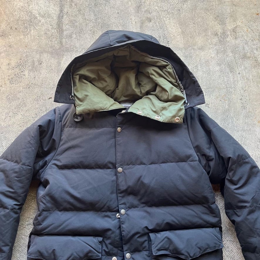 使い込むほどに体に馴染み、深い味わいが出てくる綿とナイロンの混紡素材、通称ロクヨンクロスを使用。裏地には滑りの良いポリエステルを用いたダウンジャケットです。クラシカルなディテールで仕上げたシンプルなシルエットで、スタイリングのしやすい一品。ゆとりのあるサイズ感は厚手のインナーにも対応。タウンユースからビジネスシーンまで幅広く活用できます。