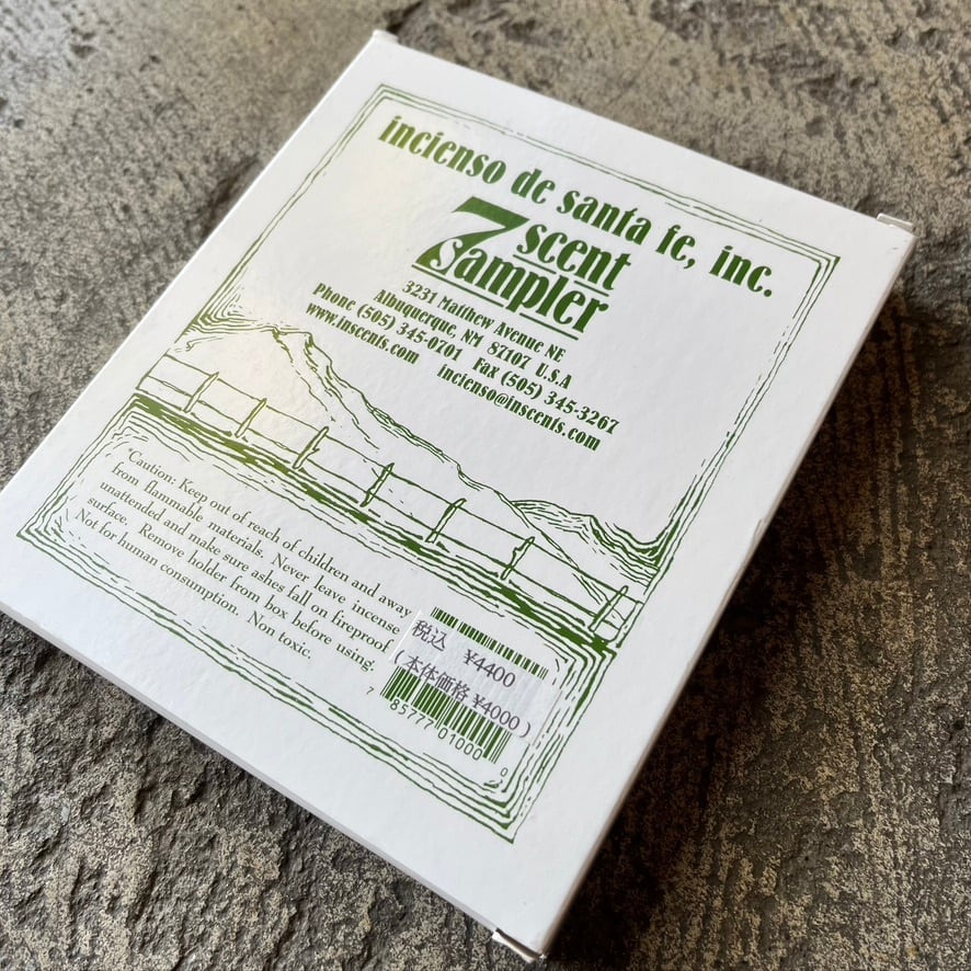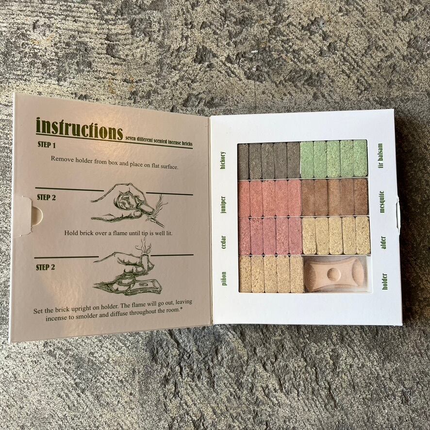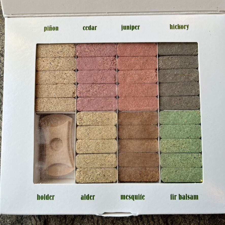 Pinon×10個、Cedar×10個、Alder×10個、Juniper×10個、Mesquite×10個、Hickory×10個、Fir balsam×10個 +お香たてのセットです。