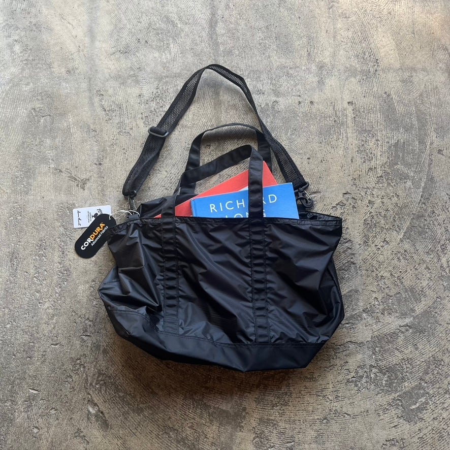 30Dのコーデュラリップストップを採用。ハリ感のある素材で軽さはもちろんのこと強度も兼ね備えています。取り外し可能なメッシュショルダーストラップ付きのトート型で上部はZip付きです。